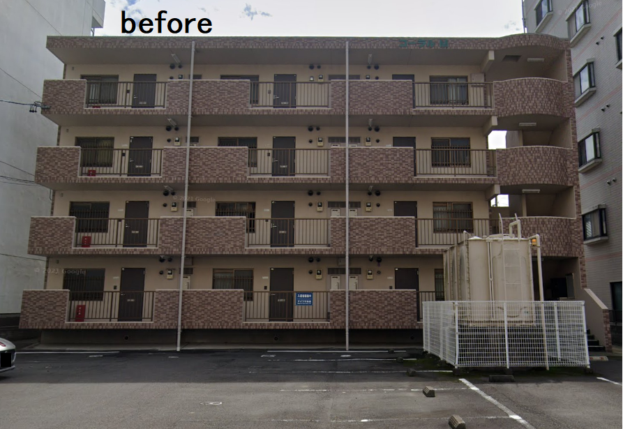 外壁塗装工事/タイルクリヤー塗装工事/通路階段床防水シート工事/ベランダ床ウレタン防水工事/駐車場白線工事               こちらはタイル面の多い集合住宅です。外壁はクリーム系、雨樋は濃いブラウン系で塗装させて頂きました。タイル面にはクリヤー塗装をしています。また駐車場の白線も塗り直しており、綺麗な外観を取り戻すことが出来ました。