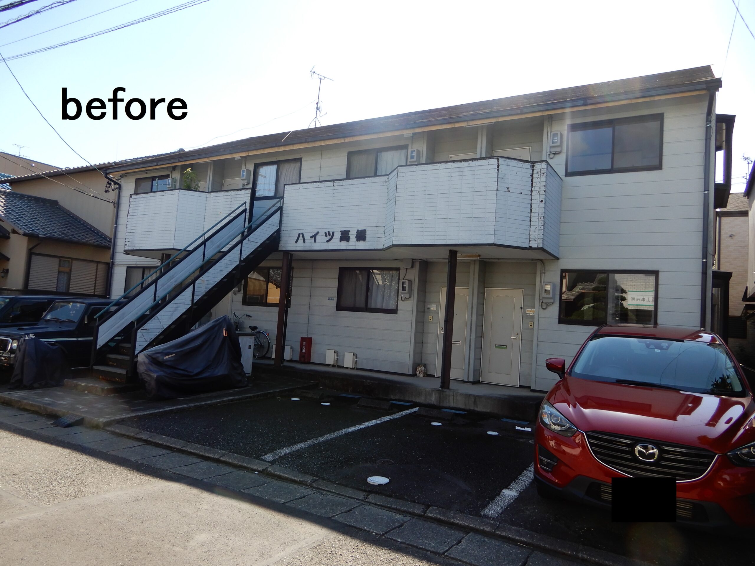 外壁塗装工事/屋根塗装工事/シール工事/換気扇フード取付け工事 外壁はサイディング、屋根はカラーベストの建物です。経年により劣化がかなり進んでいる状態でした。弊社の腕利きの職人がしっかりと補修、下地処理をさせていただきました。外壁の色を一部変えることで、高級感のあるお仕上がりになりました。