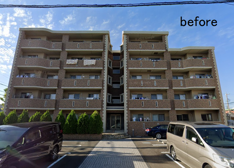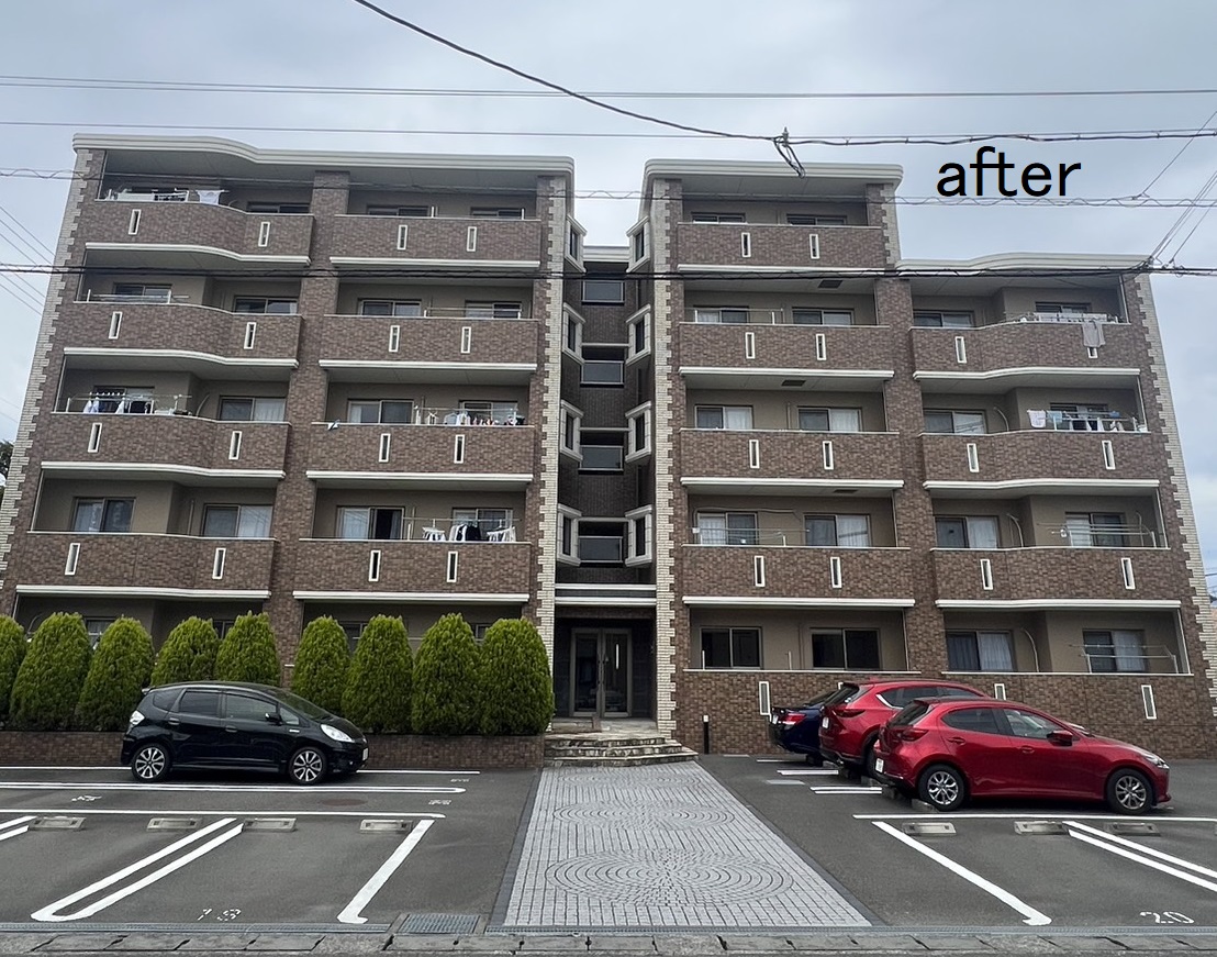 静岡市駿河区 施工期間 3ヶ月 施工内容 外壁塗装工事/タイル剝落防止工事/タイルクリヤー塗装工事/屋上防水工事 施工前と印象を大きく変えないお色で塗装しました。タイル面は補修工事をしましたので、タイルの落下を防ぐことができます。