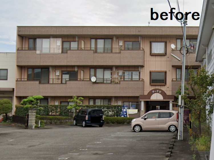 外壁塗装工事/屋上塗装工事/ベランダ床防水工事           施工前は全体が同系色の優しい印象でした。今回の施工では外壁にクリーム色、ベランダ面にやや濃い茶色を塗装し、メリハリのある印象に仕上がりました。